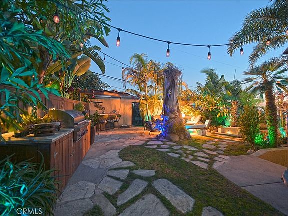 Step outside to a beautifully landscaped backyard designed for relaxation and entertainment. A built-in BBQ, a cozy fire pit, and a luxurious daybed cabana create the perfect setting for hosting guests or enjoying peaceful evenings under the stars. Mature avocado trees add natural charm to this outdoor sanctuary.