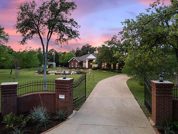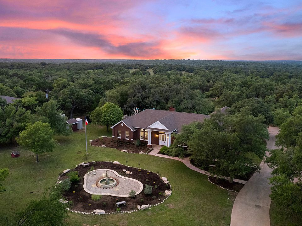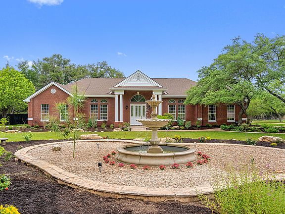 This storybook modern French country farmhouse is tucked away on a rare 5-acre parcel located on one-of-a-kind Logan Ranch Road. A custom-built automatic gate welcomes guests onto the property. The beautifully-designed and professionally-landscaped sanctuary is brimming with mature oaks, bluebonnets, and wildflowers surrounded by custom fencing that allows you to admire the deer and native wildlife around. The main home has a thoughtfully-designed one-story open floor plan. The home is light, bright, and well-appointed from the rich dark wood floors and new high-end carpet to the high ceilings and abundant windows. Inside the front door, a formal sitting area and dining room provide intimate gathering spaces for entertaining. The center of the home is a large airy kitchen with custom white cabinets and new appliances. The kitchen opens to a spacious living room with a French herringbone fireplace and custom shelving looking out onto the gardens, patio, and pool. A private primary suite and office are just beyond the living room with the other 3 bedrooms and guest bathrooms anchoring the other end of the home. The well-organized mudroom connects the residence to the garage. A stunning two-tier French country fountain serves as a focal point for the sprawling grounds, also home to a resort-style pool, a two-story kid’s playhouse and playscape, and an unfinished guest cottage. Bring your horses, goats, and chickens! There are three wells to provide ample water to the gardens and newly-planted orchards with 30 fruit trees. In addition, there are numerous raised beds, a chicken coop, a goat pen and barn, and a horse stable with cross fencing making this a homestead paradise. This property offers the best of Texas! Enjoy country living within 5 minutes of great dining and the local HEB in the heart of historic Georgetown and just 40 minutes to downtown Austin. This idyllic estate spares no detail and invites you to call it your home.