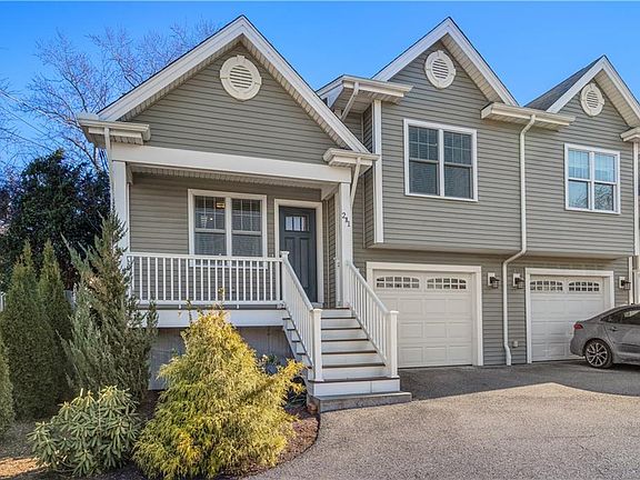 Beauty, comfort & modern amenities welcome you home to this elegant 2 Bed, 2 Bath townhouse! From the covered front porch, step inside to a bright & inviting atmosphere where cathedral ceilings & numerous windows create a feeling of abundance. The living room occupies the first level boasting hardwood floors & a gas fireplace, overlooked by the open concept kitchen/dining area above. The spacious kitchen is designed for that instant wow-factor, stunningly equipped with stainless steel appliances, granite, white cabinets, island & coffee bar/desk area. A window over the sink, skylight & recessed lighting brings ample illumination to this attractive culinary destination. The dining is mere steps away, perfect for effortlessly serving family or friends, or head out back to the rear deck for alfresco dining & relaxation. Down the hall are two bedrooms. The primary suite is a dream with its own direct access to the deck, vaulted ceilings, walk-in closet & ensuite bathroom. A full bath is convenient to guests & the secondary bedroom. The full unfinished basement is plumbed for a third bathroom, offering possibilities for future expansion. This walk-out lower level has direct access from the garage & houses the laundry. Prime location, directly over the bridge from the East Side of Providence & close to all area culinary attractions & amenities. Don't miss out, call today! OFFERS due Tuesday 1/21/2025 by 5pm
