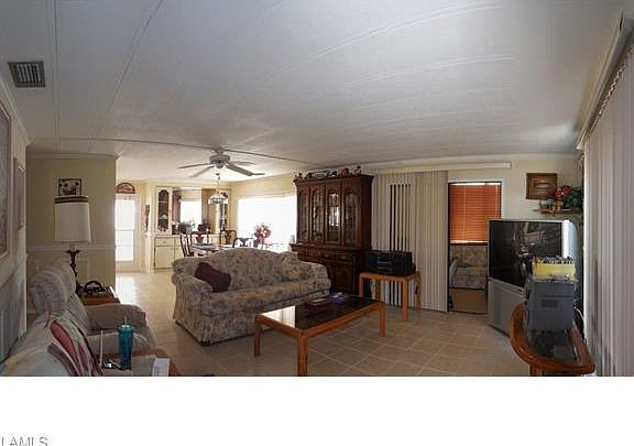 Lovely, updated 2 BR, 2 BA manufactured home in a 55+ community where you own the land and pets allowed with approval! Beautifully renovated kitchen in 2015 offers nice wood cabinetry, ceramic tile flooring, new appliances and adjoining dining area with large Bay window and built-in hutch. Spacious living room w/sliding glass doors to the raised sun room. New a/c in 2013, new foam roof and new hot water heater in 2013.