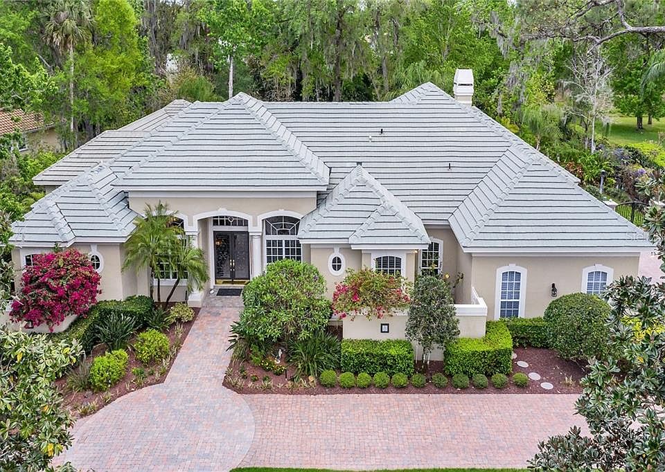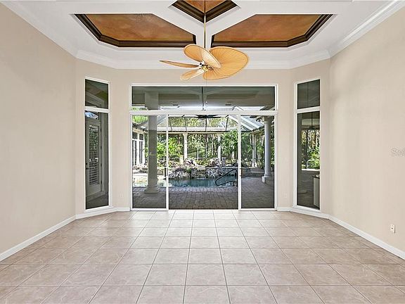 Located in one of the area's most prestigious guard-gated communities, this Dave Brewer home is on an acre plus of beautifully landscaped, fenced yard. An inspection was done, any necessary repairs were made and the house is now vacant and ready for a new owner. Pictures were taken while occupied and while vacant to give you an idea of the possibilities. When you enter the foyer through the double leaded glass doors, you can see through to the spacious luxurious lanai. The entire home features built-in bookcases, coffered ceilings, crown moldings as well as travertine, hardwood or tile floors. With 4 bedrooms plus a study/office, there is plenty of room in the main house. The master is oversized, having been added onto when the house was enlarged and the guest house added. Still working from home? Connected by the lanai is the custom guest house/office with its own outside entrance. This beautiful suite with expansive doors and windows overlooks the lanai and koi pond. The lanai is truly spectacular with two under roof seating areas, one with a fireplace, outdoor kitchen with Dacor built-in grill surrounded by a bar. The pool and spa feature several waterfalls and fire features for a wonderful outdoor living space. The beauty does not end there. The yard is landscaped to give the appearance of a park with a pond, lighted paths and mature trees. This property will appeal to the discriminating buyer. Make your appointment today.