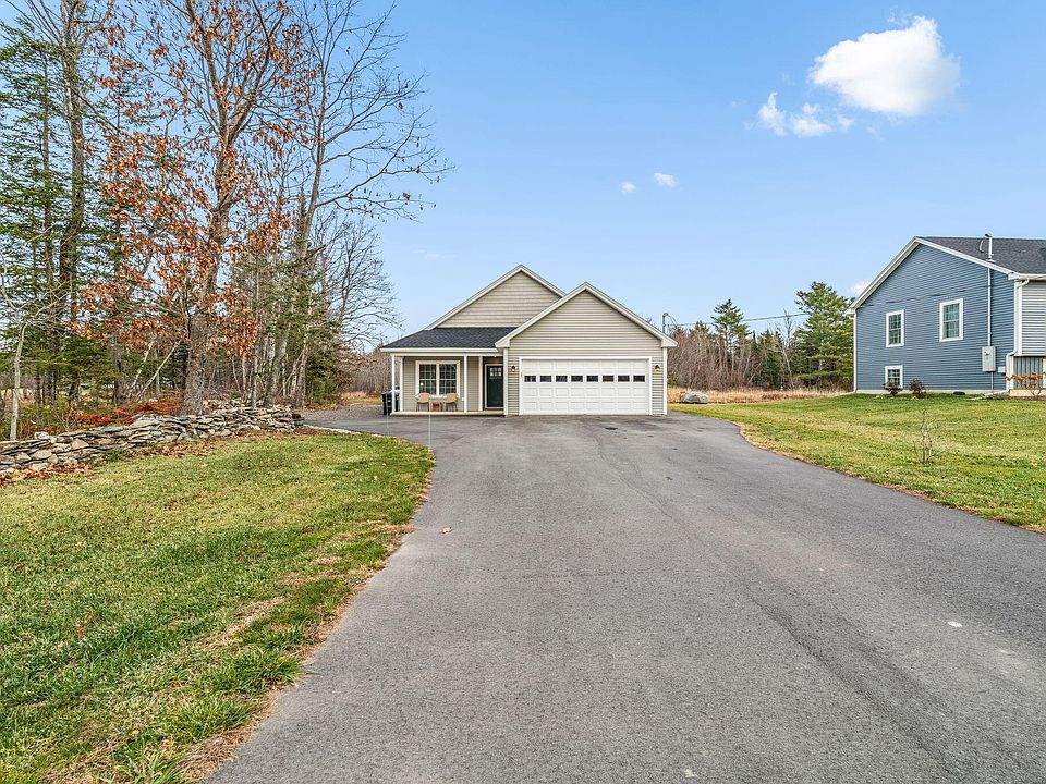 Discover modern comfort and timeless style in this beautiful 2022-built ranch home. Designed with an open and airy floor plan, this property welcomes you with a charming covered front porch, a stone walkway, and thoughtful architectural details throughout.