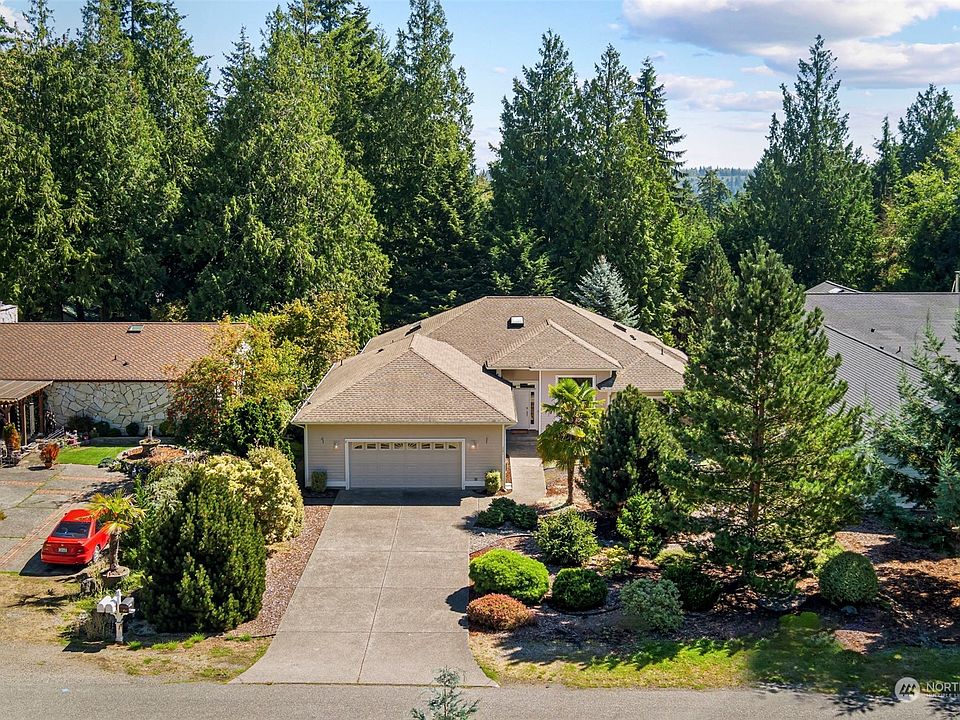 Check out this charming 2-bedroom plus bonus room residence, with beautifully established landscaping in lovely Port Ludlow! Inside, enjoy brand-new carpets, flooring, and fresh paint throughout, and a brand new roof and skylights, making the home move in ready and feel like new. The den, with its elegant French doors, offers a perfect space for a home office or cozy retreat. A cement-floored storage shed in back and a large workshop in the two-car garage provide ample space for hobbies. Pull down stairs in garage lead to more storage. Resort-like living awaits with access to the Beach Club, tennis courts, pools, gym, and trails, a golf course and marina just minutes away. Don't miss this well maintained first-time-on-the-market gem!
