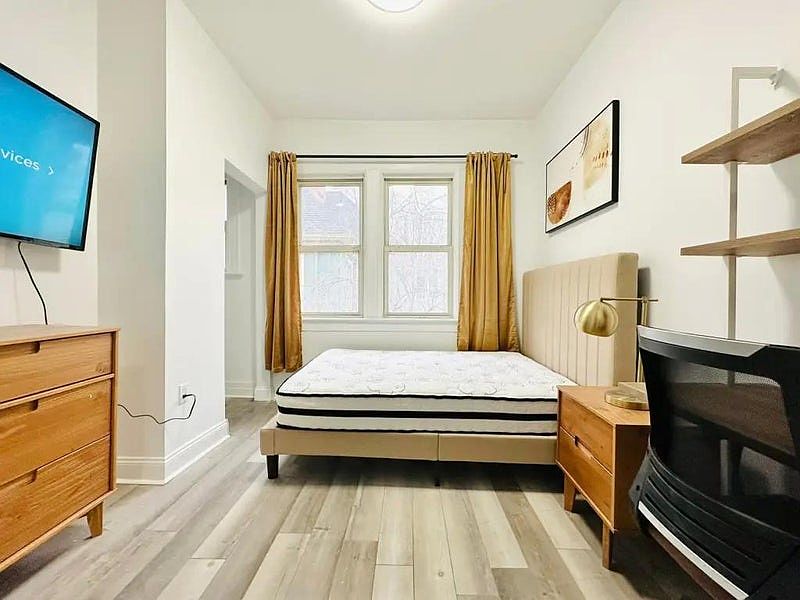 - 82 sq ft Furnished corner room with 2 closets, tons of natural light - Washer/dryer in unit. - 1.5 bathroom (half bathroom is private and not available for use) - 4 Minutes walk to Q train. 28 minutes to Manhattan. - Bedroom furniture includes: dresser, HD TV, bed, mattress, desk, chair, curtains, art, wall lamps - Utilities are $160 per person - Preparation fee: $175 (One-time: inspection, cleaning and admin cost). Phone screening is required before accepting a booking request. Quiet hours between 10 pm and 8 am. Proof of income or large savings or a guarantor are required to stay over 3 months. Docusign rental agreement is required with every booking.