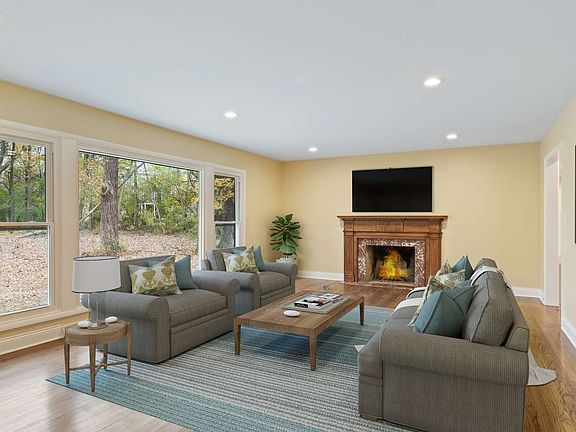 Recently renovated, large 3 bedroom, 2.1 bath brick ranch with 2,960 square feet above grade on a 2.71 acre wooded property. Living room with fireplace. Large family room with vaulted beamed ceiling, stone fireplace, and sliding glass doors leading onto a large wood deck with new decking. New white eat-in kitchen with updated cabinets, counters and stainless steal appliances. Hardwood floors throughout. Garaging for four cars, includes a 2-car attached garage, plus an additional 2-car detached garage with workshop area. Unfinished basement with high ceilings and two egress windows provides tons of storage or opportunity to create additional living space. Taxes reflect a fair market assessed value of $1,100,000 and should be reassessed based on the actual sale price after closing.