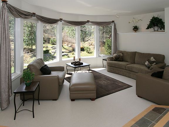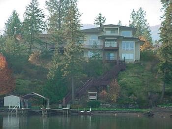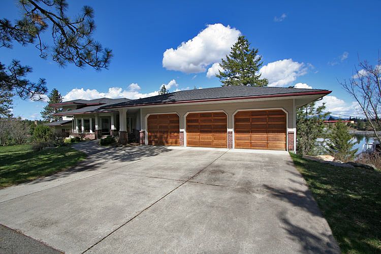 Waterfront home on the Spokane River with style & grace tucked away on paved private drive, landscaped 1.3 acres with 3 car garage. Slate floor entry, sunken parlor/sun room, island kitchen with maple cabinets & floors, granite, gas range, family room with unique glass tile gas fireplace, sunken dining room & office. Great river & mountain views to deck, hot tub, sandy beach & dock.