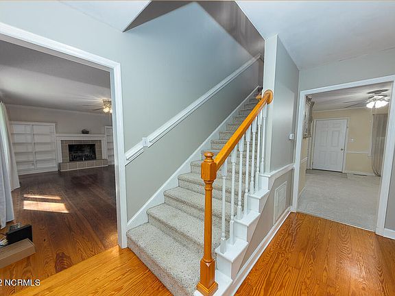 Well maintained one & a half story cottage style home with 4 bedrooms, 2 full baths and 2 half baths. Two master bedrooms affords you the option of using the one downstairs or upstairs as the primary. Hardwood floors flow throughout the formal living areas and new carpet just installed in the family room. A spacious kitchen with ample cabinet space opens to the family room & formal dining room. The oversize deck above the garage is just waiting for your next party and overlooks scenic golf course views. Beautiful lot with mature landscaping and Trent River views from your front doorsteps.