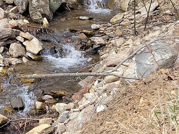 With lots of sweat equity, you can escape to your own private retreat with this 1,050 sq. ft. log cabin, nestled on 3 acres. This charming cabin has so much potential, offering the perfect getaway or full-time residence for nature lovers and those seeking peace and privacy. A stunning, floor-to-ceiling stone fireplace serves as the centerpiece of the living space, perfect for chilly evenings. In addition, a mini-split was installed in 2022. Aged wood floors add to the rustic charm and character of the home. The home is equipped with a dumb waiter, a claw foot tub and a metal roof. The original driveway was removed by Hurricane Helene, and access is now via a footbridge. There is a barn and outbuilding, ideal for storage, a workshop, or even conversion into a guest space or studio. Includes a creek and a beautiful rock outcrop. Whether you're looking for a weekend retreat, a homesteader’s paradise, or a creative renovation project, this property offers endless possibilities.