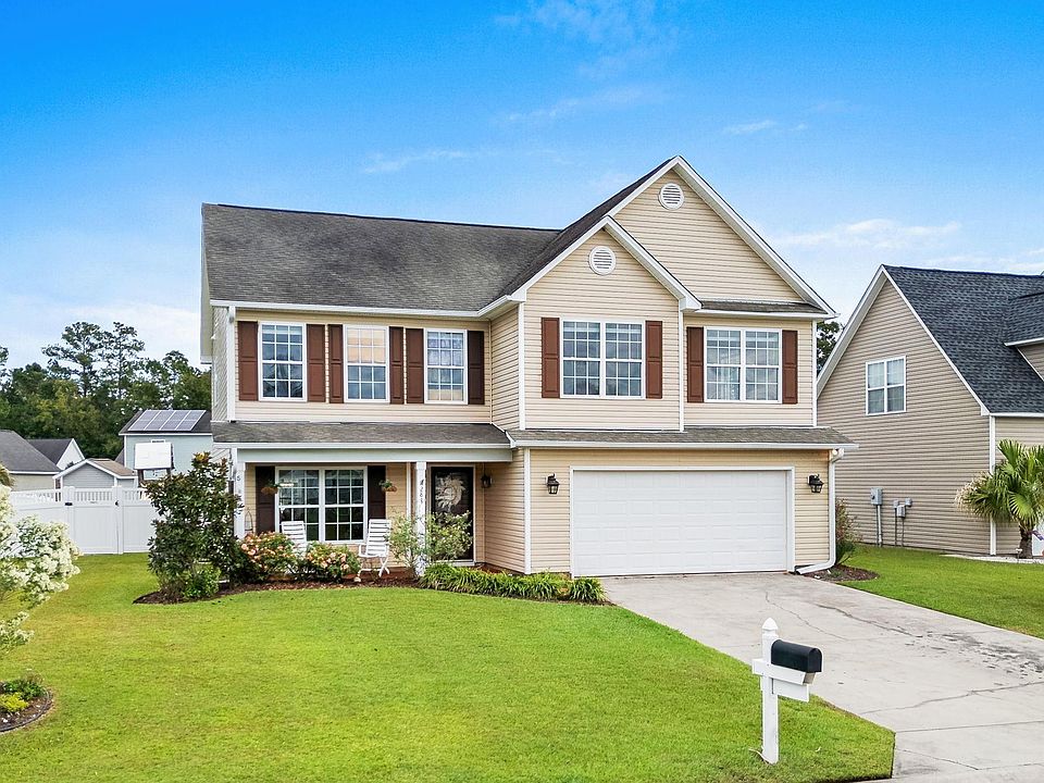 Welcome home to this beautifully maintained two-story residence in the highly desirable Sugar Mill community of Myrtle Beach. Featuring 4 bedrooms, 2.5 bathrooms, and a 2-car garage, this spacious home offers 2,688 square feet of comfort, style, and thoughtful updates throughout. Step inside to discover a bright, open layout with newly installed luxury vinyl plank flooring across the main level, complemented by freshly painted trim, baseboards, and doors. A flexible front room provides the perfect space for a home office, playroom, or formal dining area. The kitchen boasts crisp white cabinetry, abundant counter space, a walk-in pantry, and a generous eat-in area large enough for a six-person table. It opens seamlessly into the cozy living room featuring a gas fireplace—ideal for family gatherings or quiet evenings at home. Upstairs, you’ll find all four bedrooms, including a spacious primary suite complete with a large ensuite bathroom offering double vanities, a soaking tub, a walk-in shower, and a roomy walk-in closet. The additional bedrooms are well-sized, filled with natural light, and offer excellent closet space. Step outside to enjoy a fully fenced backyard with a peaceful pond view. There’s a dedicated garden area for growing your favorite vegetables, along with a patio perfect for outdoor dining or relaxing. The backyard also provides plenty of room for play equipment or pets. Additional features include a new HVAC system installed in 2023 and daylight LED bulbs throughout—energy-efficient with an impressive 11–13 year lifespan. Residents of Sugar Mill enjoy access to a community pool conveniently located at the front of the neighborhood. The community is just 2 miles from Forestbrook schools and minutes from Myrtle Beach’s top golf courses, shopping, dining, and beaches. Don’t miss your chance to make this beautiful home in a vibrant community yours—schedule your private showing today!