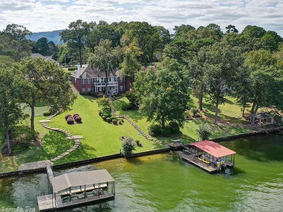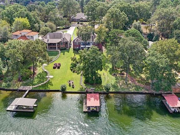 MAGNIFICENT OPPORTUNITY to own this remodeled/updated 6 bedroom, 4.5 bath lake home - great location by land or lake! Walk in level is a master suite + 2 other bedrooms, 14 ft ceiling living rm w/fp & walls of windows overlooking lake, dining area w/fp, granite kitchen 2/brfk bar, SS appliances. Downstairs is fabulous with a bunk room (sleeps 9), another master + 6th bdrm & 2 bathooms. Lower living area w/fp. Upper & lower decks, covered boat dock, hot tub. HIGHLY SUCCESSFUL VRBO OR CAN BE YOUR DREAM HOME!
