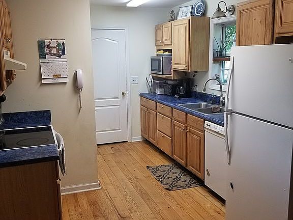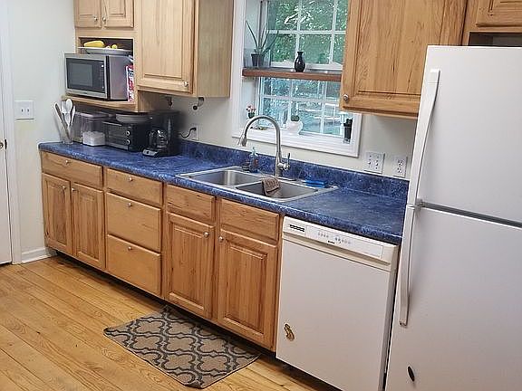 Charming 3br/2bath home situated on a lovely acre lot with plenty of mature shade trees. Home has hardwood floors throughout, fireplace in living room, split bedroom concept, rocking chair front porch, nice size deck, and a storage building with electric (with a new roof). The front yard has a beautiful view of an open pasture. The backyard is partially fenced in with a sturdy tree house and zipline in a beautiful patch of woods behind the shed.