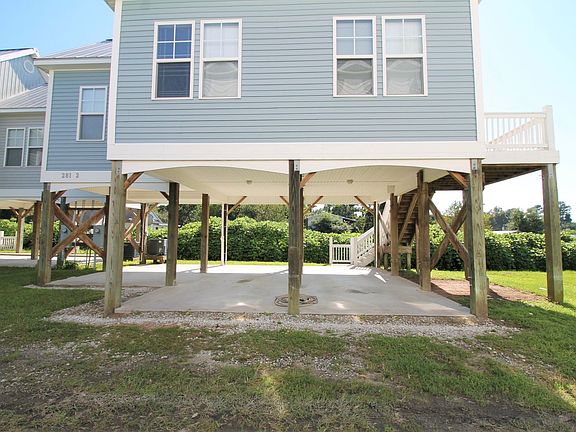 Quaint 2 bedroom and 2 bathroom duplex home. Primary bedroom with en suite. 2nd bedroom, hall bath, PLUS 2nd level loft space that can be used as an office/2nd living area/craft space/etc. Carport area under home will accommodate vehicles and boat. All appliances included, including stacked washer and dryer. This sweet home is about 1 block to public boat ramp and restaurants as well as being close to Camp LeJeune back gate!