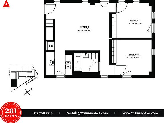This is a 2 bedroom, 1.0 bathroom, apartment home. This home is located at 281 Union Ave APT 3A, Brooklyn, NY 11211.