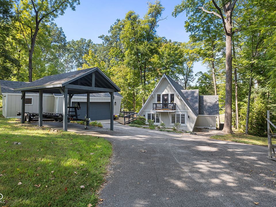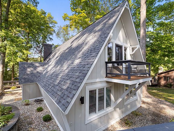 Stunning Waterfront Retreat at Heritage Lake Welcome to your dream lakefront getaway! This beautifully updated 3-bedroom, 2-bathroom home perfectly blends modern comfort with cozy lake house charm. Situated on a nature-filled lot with mature trees and scenic walkways surrounding the property, this one-of-a-kind retreat truly captures the feeling of "going to the lake." Step inside to discover a thoughtfully renovated interior featuring an open-concept kitchen and living room designed for effortless entertaining. Vaulted ceilings and an abundance of windows flood the space with natural light and offer breathtaking views, creating a grand yet inviting atmosphere. Outside, enjoy multiple decks perfect for relaxing or hosting, along with a brand-new dock that includes storage, a motorized boat lift, and canopy-ideal for all your waterfront adventures. Plus, just across the cove, you'll find a community beach and playground, adding even more fun and convenience for family and guests. The oversized two-car garage provides ample space for lake toys and seasonal storage. Recent upgrades include a new roof and updated electrical panel, ensuring peace of mind for years to come. Whether you're enjoying coffee on the deck, a sunset cruise, or cozy nights by the water, this home is your year-round lake sanctuary. Don't miss your chance to own this unique slice of paradise at Heritage Lake!