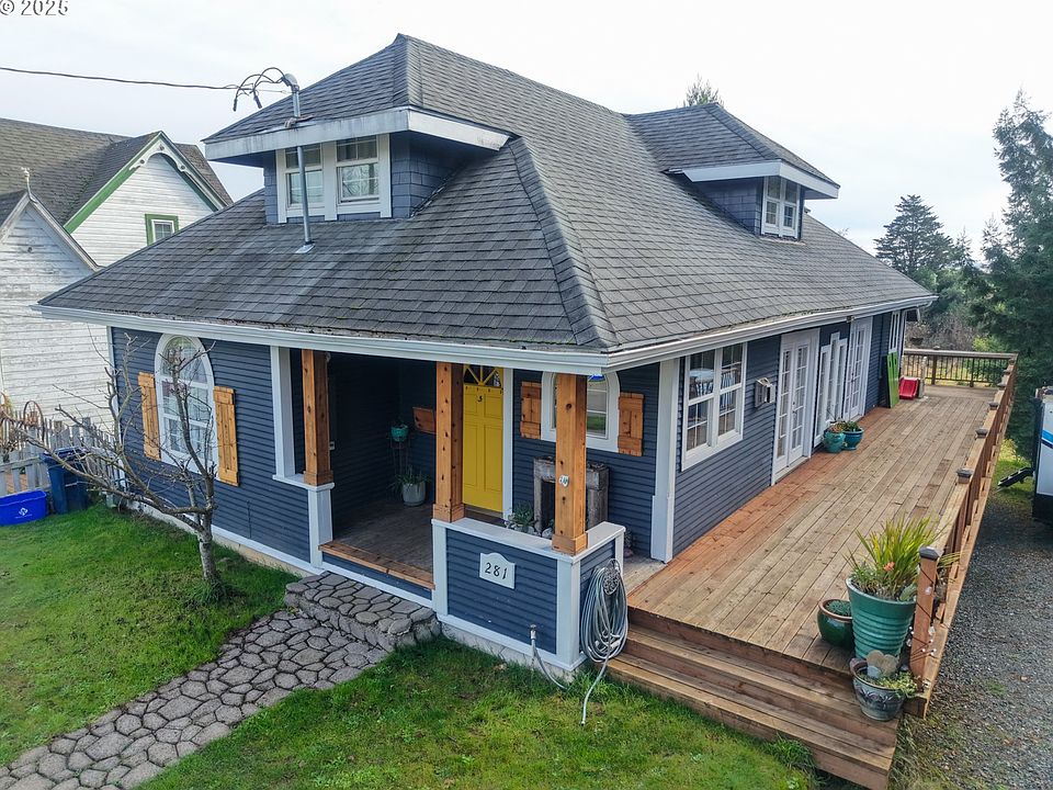 Discover the perfect blend of historic charm and modern comfort in this beautifully updated 1890 farmhouse-style home on over half an acre in the heart of Coquille. Offering 2,310 sq ft, this spacious 3-bedroom, 2-bath home includes a finished basement currently used as a 4th bedroom/family room, plus a small office/bonus room for added flexibility.The timeless character of this home shines through the original fir flooring throughout the main level, while thoughtful modern upgrades elevate everyday living. The sellers have fully remodeled both bathrooms and enhanced the kitchen with butcher block countertops, subway tile backsplash, updated flooring, and stainless-steel appliances including a natural gas range, refrigerator, and dishwasher. Additional improvements include modern fans, updated light fixtures, and expanded outdoor living spaces.Step outside to enjoy the freshly expanded back deck and lower terrace, perfect for entertaining, relaxing, or watching local fireworks right from home. The southern-facing backyard offers serene views and the peaceful feeling of being “out in the country,” while still being conveniently located in town. With a large lot featuring pasture, RV parking, and an unfinished workshop area in the basement, this property offers space, versatility, and charm rarely found together.Experience some of the nicest weather in the county year-round, right from your own private slice of Coquille.