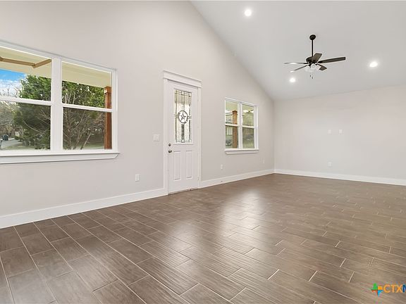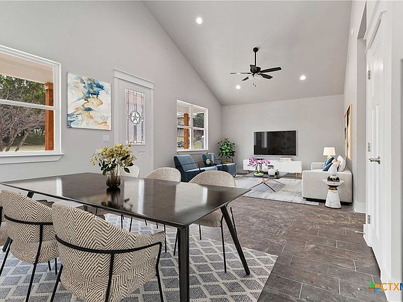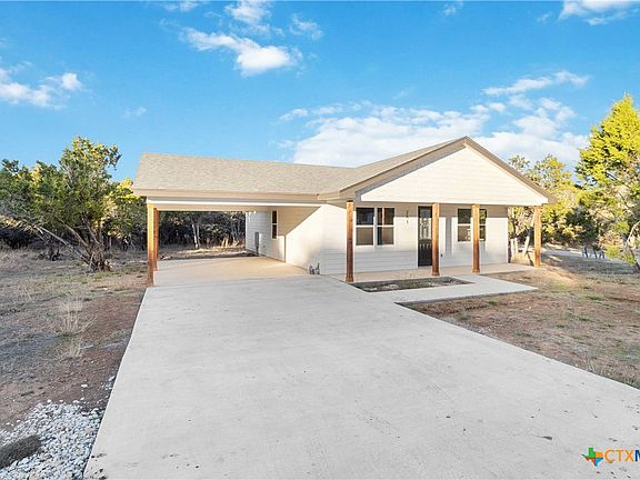 Make this adorable one-story home situated on a spacious corner lot in Wimberley, TX yours this fall! Walk through the front door to be welcomed by an open floor concept with views of the living area to the left and kitchen to the right, along with a bright hallway connecting you to the rest of the home. The high ceilings give this space and airy, open feeling you'll love. Enjoy upgraded, durable tile flooring throughout the home - that's right, no carpet! The kitchen features soft close cabinets, stainless steel appliances, and space for a breakfast table or rolling island. Venture down the hallway to find a laundry room with stackable washer and dryer connections, along with a full bathroom across the hall. The primary bedroom is tucked at the back of the home with an ensuite that offers a shower/tub combo, beautifully tiled to the ceiling and granite countertop. At the other corner of the home is a second bedroom facing the backyard with great views of trees. The third bedroom is in the center of the home, perfect to use as a bedroom or craft room. From the back door that can be accessed from the hallway, you'll find yourself on a wonderful wood deck with cedar railings and a gate. You have plenty of yard space to create your oasis off the deck. On the side of the house you'll enjoy an attached carport to keep your vehicle out of the elements and under shade. The front porch has lovely cedar posts accenting the crisp, white exterior and hill country-style door with a Texas Star. Bring your ideas to make this lovely home a primary residence, second getaway home, or add it to your portfolio. Tours happening now! Some photos are virtually staged.