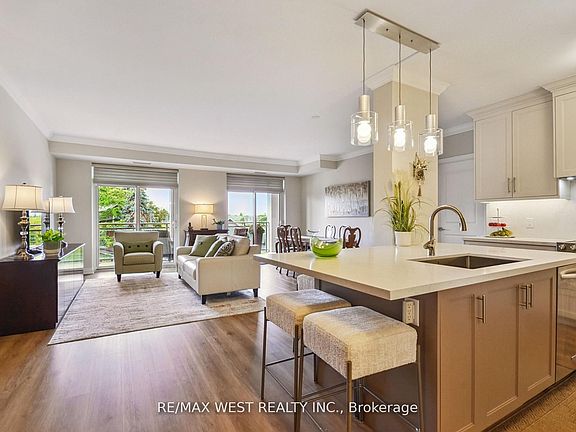 Prime Location in the Heart of Market Lane! Steps from shops, restaurants, and all amenities, this beautifully renovated condo combines the comfort of a home with the convenience of condo living. Featuring a gourmet chefs kitchen with quartz countertops, quartz backsplash, oversized island, and premium stainless steel appliances, this kitchen surpasses those found in many houses. The bright, open-concept layout boasts 9 foot ceilings with crown molding, new luxury vinyl flooring throughout, and a spacious living/dining area that flows seamlessly to a large west-facing balcony with gas BBQ hook up perfect for entertaining. The unit offers 2 generous bedrooms, 2 bathrooms, a walk-in closet with custom organizers, and in-suite laundry with laundry tub . Enjoy outstanding building amenities including a fitness centre with sauna, party room, bike storage, concierge/security, guest suite, and visitor parking. Just minutes to transit, highways, trails, Vaughan Business Centre, this residence is the perfect blend of elegance, comfort, and convenience. Don't miss this rare opportunity to own in one of Woodbridge's most sought-after locations!