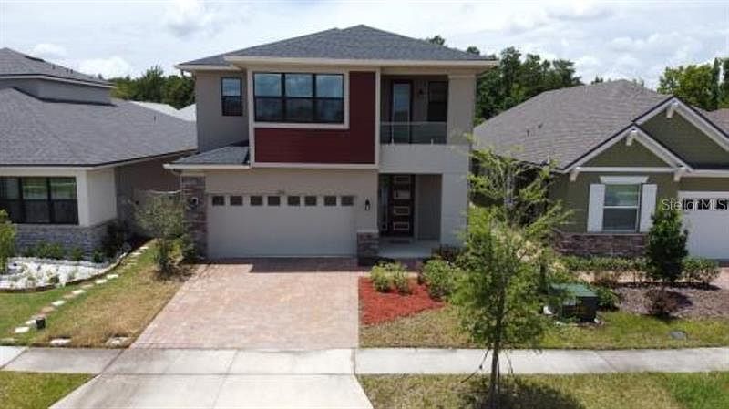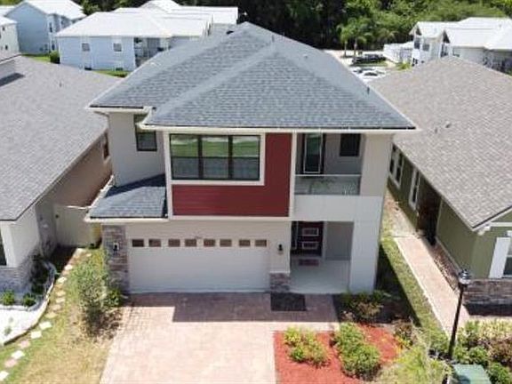 Gorgeous 2 story home in move-in condition, 4-bedrooms 2.5 baths, 2391 sq. ft interior living area, built in 2018, in the new Tapestry community in Kissimmee. Newer home, sparsely occupied has UPGRADES GALORE - Stylish designs and Features. 2 car garage with WINDOWS, PAVER DRIVEWAY, covered entrance, fenced yard and FULL LENGTH Lanai with FULL SCREEN enclosure. Front door with MODERN CONTEMPORARY design. Ground floor features LARGE SIZE TILE flooring creating a spacious look and feel in whole house. Upgraded kitchen CABINETS with STAINLESS STEEL APPLIANCES and GRANITE COUNTERTOPS. Additional room for HOME OFFICE and a half bathroom in hallway. Staircase leads to upstairs master suite with double sink vanity bathroom and walk-in closet, 3 roomy bedrooms with carpet flooring, a loft and a full sized bathroom. All bathrooms luxurious with granite countertops and BATHS TILED TO CEILING. Private BALCONY with GLASS PANEL BELOW RAILINGS. Carrier 15 Seer high efficiency heat pump and A/C, energy efficient 40-gallon water heater, Ecobee Smart programable thermostat with built in Amazon Alexa voice services and MI insulated low-E double panel vinyl windows. Home still under warranty. Amenities include 24 hour guarded gate, community pool, state of the art fitness center, walking trails and playground. Conveniently located near the Loop Shopping Center, schools, restaurants, main highways, Orlando International Airport, and attractions.