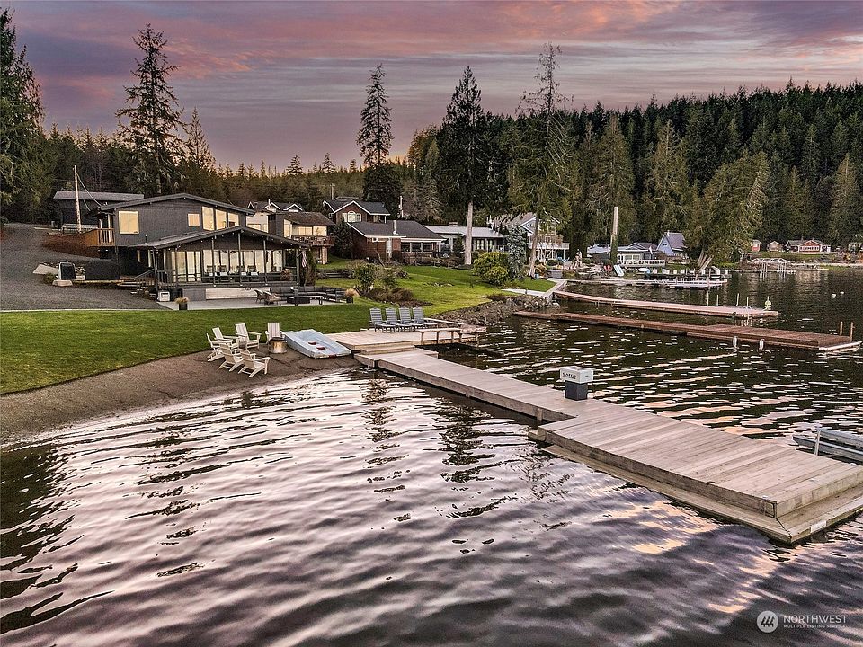LOCATION! LOCATION! This no-bank, SANDY BEACH wtrfrnt lot located in Mason Lake's coveted "Calm Cove" provides protection from the wind, great sun exposure, amazing neighbors & EXPANSIVE views looking down the lake! The stunning turn-key 3 bed + BONUS RM home was remodeled in 2023 incl brand new appliances throughout! Large garage/shop off the main road (29' x 19') w/ 12' tall garage door. Mason Lake is Mason Counties most popular, sought after lake, known for its great active water sports, fishing, sailing, cycling, off-roading & more! This lot provides an exceptional amount of parking for entertaining guests + a detached bunk house that sleeps plenty! Come enjoy one of WA state's cleanest lakes w/ crystal clear water & active lifestyle!