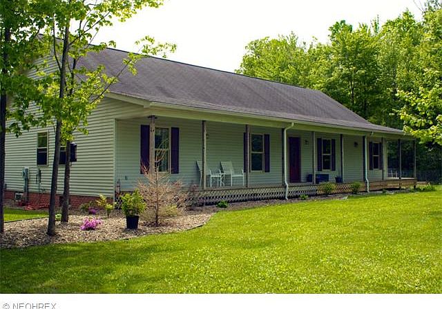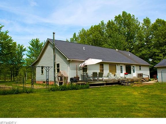 Spacious ranch , 4 BR 2 BA on a full basement. Basement has 8 ft ceilings and is fully dry walled. Master bath is extra large and the master bedroom closet is huge. All NEW in 2010-- furnace and ductwork, heat pump AC, plumbing, electric throughout house-- including panel, carpet, exterior doors, drywall in basement. Garage doors new in 2014 and raised garden beds established in 2014. 24x24 garage has a concrete floor. Sellers have a few minor repairs /improvements yet to do-- but wanted to get going with spring arriving! Home sits well back from the road and has nice foundation plantings that will continue to mature and provide a privacy screen. Just minutes to the Rail to Trails Greenway walking, biking, snowmobiling path that runs from Ashtabula City to Warren OH. All of this on a 10 acre parcel of land. Sellers are motivated!!