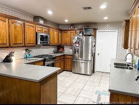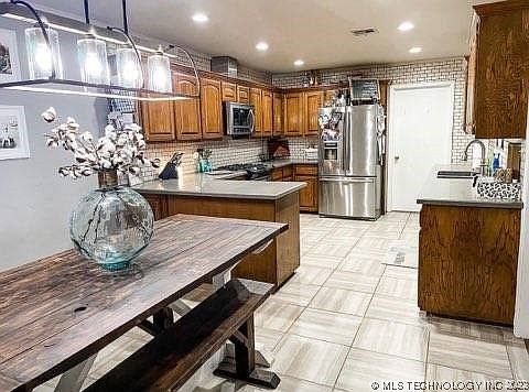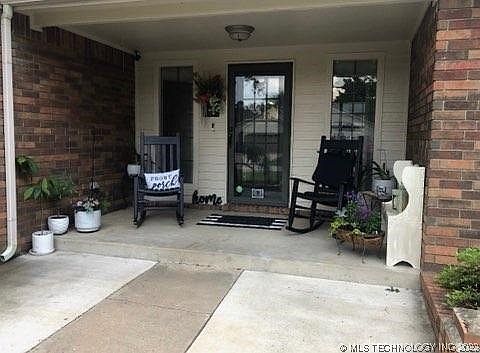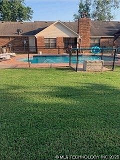 Gorgeous home with beautiful gunite pool. Stunning warm wood cabinets in kitchen and utility room with large, vaulted living room overlooking the pool. The kitchen includes many cabinets as well as a gas/convection range top and oven. The kitchen has a lot of neutral subway tile which enhances the cabinets and countertops. It includes an eating area with a updated light and a place for barstools if you desire. There's a covered porch in front and beautiful landscaping. Upgraded ceiling fans are in all bedrooms and living area. The pool is cross fenced and has a safety cover to ensure child safety. Lots of maintenance has been done to this house since buying including larger attic access, new stairs, and plenty of flooring for storage. Pool had a dolphin installed and was painted a beautiful azure blue this year. It also contains a water feature. A French drain was added in the back along with gutter covers for low maintenance. The home has a full Vivint alarm system and cameras. New doors were added to the shed in back. It can be used for many things including a dog pen with a run or would make a great hobby place or office. A new primary shower was just installed, and the wood burning fireplace with gas starter was completely upgraded. It also has a large 4 X 8 inside safe room located to the side of the garage. The garage has an opener with a keypad. The well-established neighborhood is quiet, and all houses are very well kept with great friendly neighbors. Secondary bedrooms have large closets as well as the primary bedroom. Utility room has tons of storage. Top rated schools are close by which include Tony Getz for grade school and Alice Robertson for junior high. The cabana features wiring for TV and sound with room for a grill and seating. This house is an oasis and makes you feel like you are on a fulltime vacation. It is conveniently located near lots of stores and restaurants, services and entertainment. This won't last long!!!
