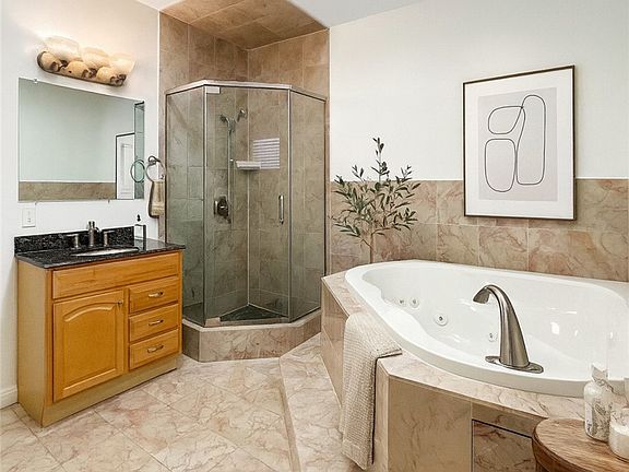 Sparkling poolBackyard oasisSpa-like bathroomPrivate master suitePlenty of natural lightOutdoor diningJacuzzi tub
