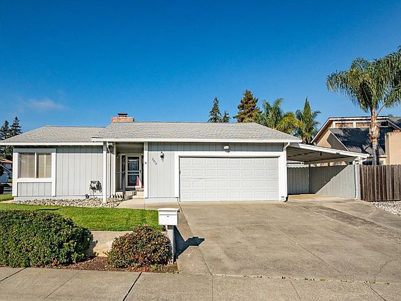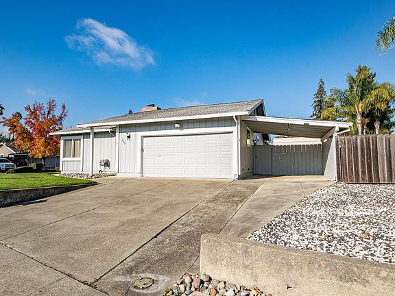 Welcome to 2810 Miller Ct in Fairfield's desirable Piedmont Village neighborhood! This 3-bedroom, 2-bath single level home offers 1,638 square feet of comfortable living space on a large corner lot in a private court. The kitchen features updated Corian countertops, a breakfast bar, ample cabinetry, and convenient outdoor access. The guest bath has been updated with a granite countertop and shower. Simulated wood flooring enhances the entry and guest rooms, while classic shutters dress the windows throughout. Enjoy the expansive sunroom with built-in cabinetry, sink, abundant natural light, and direct backyard access. Additional highlights include a newer HVAC system, dual-pane windows, finished garage, and beautifully landscaped grounds with lawn and outdoor decking. The property includes covered RV parking and custom-built sheds ideal for storage or workshop space. Conveniently located close to quality schools, shopping, dining, Travis Air Force Base, and freeway access.