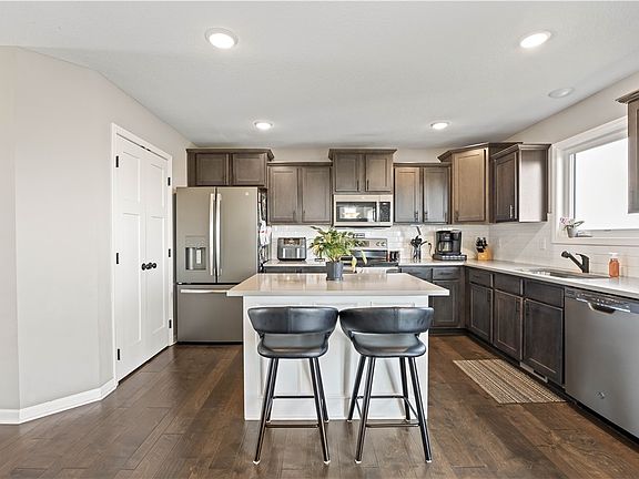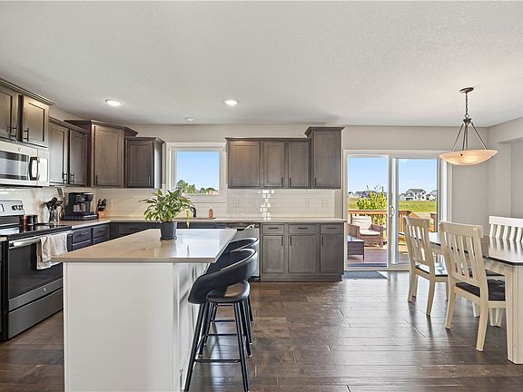 Discover your dream home at Trestle Crossing! Nestled in Northwest Ankeny, this neighborhood is close to the High Trestle Trail bike path, Saylorville Lake, and Ankeny Centennial Schools. This stunning two-story house offers a generous 1900 sqft of living space. Step inside to a spacious great room, perfect for cozy evenings by the gas fireplace, with a built-in component shelf. The eat-in kitchen features granite countertops, beautiful cabinetry, a stylish backsplash, and modern slate appliances. There's a pantry, a handy desk area, and rich hardwood floors that add elegance. Ascend the lighted stairway to the second level, where convenience meets comfort with a centrally located laundry room. This level also houses four spacious bedrooms and two well-appointed bathrooms. The master suite is a true retreat, boasting a walk-in closet, luxurious quartz countertops, and double sinks. Outside, the deck offers a perfect spot to relax, overlooking a fully sodded and fenced-in yard. The lower level is ready for your personal touch, already plumbed for a bathroom. With a three-car attached garage, this home has it all.