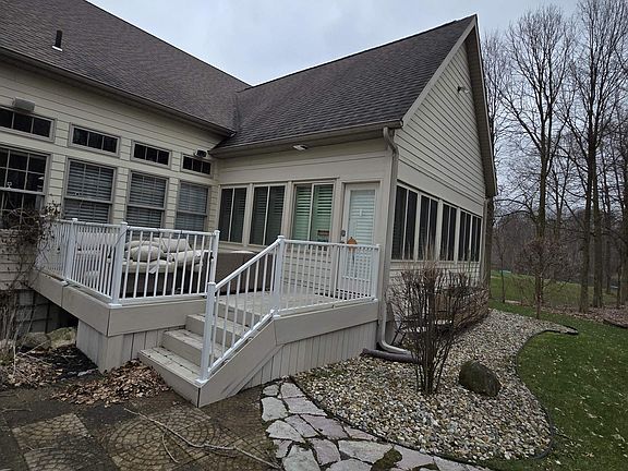 Welcome to a Quality Built home with features you would expect in a home priced thousands more! Brick, Stone, Wood Exterior, 3 Bedroom, 2 Bath one story with additional Bedroom and full Bath in lower level. Amazing woodwork with coffered, vaulted and curved ceilings with back lighting. Curved corners. Great room with fireplace, kitchen with granite counters with built-in steam cooker, range and oven. Cafe Refrigerator. Built-in Sound System through out the home. Beautiful 20 by 15 heated and cooled sun porch with vaulted ceiling walking out to the deck, pond and waterfall. Lower level has a kitchen, bedroom, full bath, large cedar lined closet and 770 sq ft finished. Tankless gas water heater, gas whole home generator, and the list continues. Oversize 3 car finished garage with ceiling fan and heated.