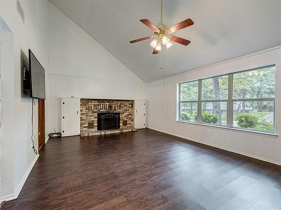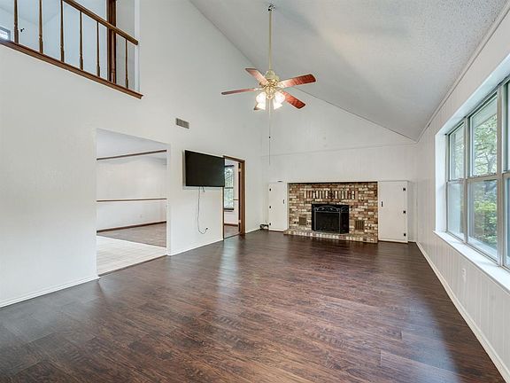 LOCATION LOCATION LOCATION! This 3 bedroom, 2 bath home is conveniently located near Downtown Grapevine, Southlake Town Square, multiple highways & DFW Airport! A gorgeous canopy of mature trees surround this home for a truly serene environment. Welcoming living area hosts tall ceilings, decorative brick fireplace & large(UPDATED) windows for great natural light. Kitchen features plenty of cabinet + counter space and a dining room with refreshed parquet flooring. Owner's retreat on 1st floor! Second floor leads you to a lofted living area and two generously sized additional bedrooms. Private backyard is great for entertaining guests on the spacious wood deck! Rare opportunity in highly sought after GCISD!!