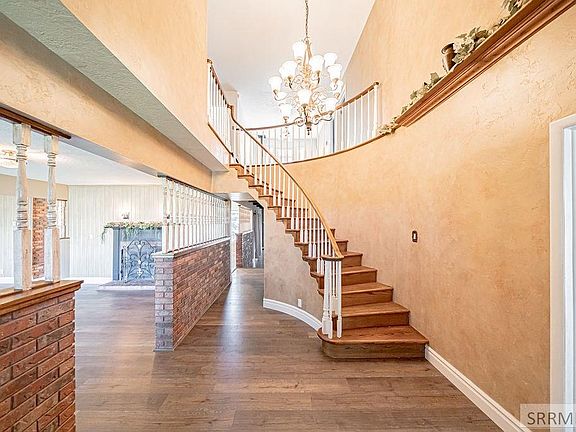 Built by local builder Lynn Broadhead, this beautifully updated home sits on over 3 acres in one of Blackfoot's most desirable locations—close to town, schools, and surrounded by scenic views. A grand two-story entry with a chandelier and curved stairway welcomes you into the home's elegant interior. The main level features a remodeled dream kitchen with quartz countertops, custom cabinetry, and stainless steel appliances, complemented by both formal and casual living areas, an office, laundry, and a stunning primary suite with a spa-like bath and custom closet. Upstairs, you'll find four spacious bedrooms, two updated Jack & Jill bathrooms—each featuring granite countertops—and bonus spaces for work or play. The finished basement adds a kitchenette, full bath, and additional living space, offering flexibility for guests or multi-generational living. Recent updates include a new HVAC system (2022), new roof, exterior paint, gutters, waterproof flooring, remodeled bathrooms, pellet stove (2024), and lighting. With an attached 2-car garage, a 32'x40' shop with RV door, and ample room to roam, this property perfectly blends craftsmanship, comfort, and country charm.
