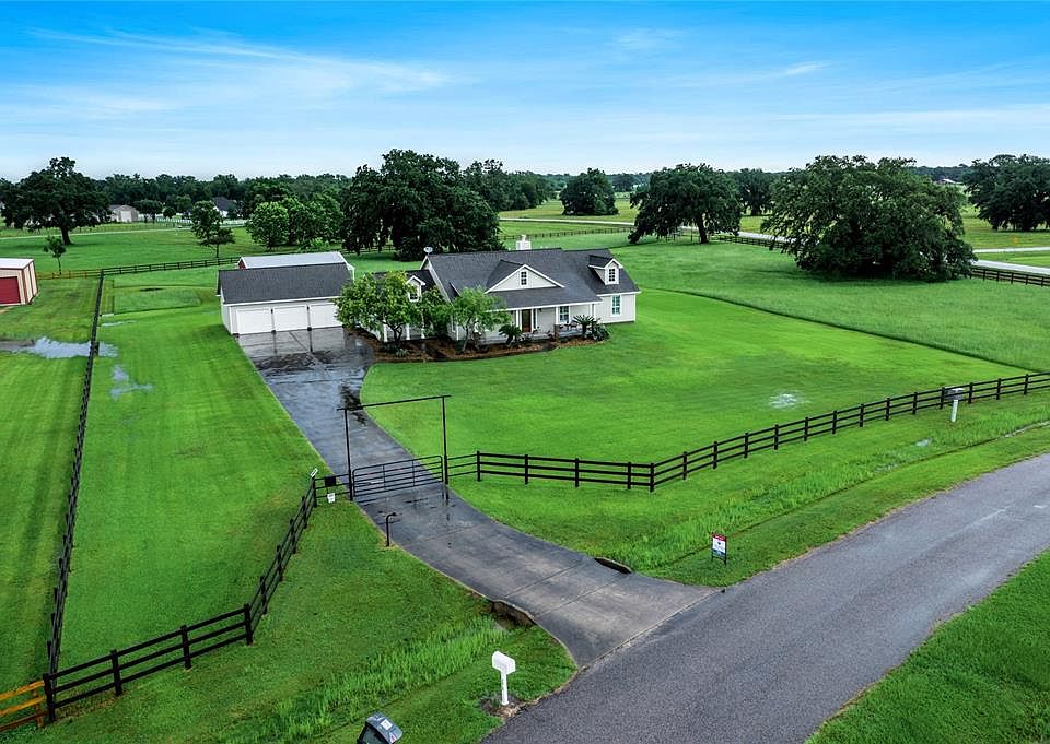 LOOK NO FURTHER! CUSTOM BUILT 1 STORY ON EXPANSIVE 4.09 ACRE (per BCAD) CORNER SETTING! Super Peaceful Atmosphere - Gated Driveway + 30' x 40' Barn! Oversized Detached 3 Car Garage! Ultra Versatile Interior Layout - Study/4th Bdrm + 2 Half Baths! Impressive Family Room - Stone Surround Fireplace Flanked by Built-In Cabinetry & Shelving! Recessed Lights + Crown Millwork! Chef's Dream Island Kitchen: Silestone Counters + GE Profile Stainless Appliances! 42" Cabinetry w/Under Cabinet Lighting + Wrap-Around Breakfast Bar + Walk-In Pantry! Palatial Master Suite - Dramatic Tray Ceiling + Whirlpool Garden Bath w/Dual Sinks & Walk-In Closet! Banquet-Sized Formal Dining! Oversized Utility Room w/Sink & Work Space! Custom Plantation Shutters Throughout! Security System w/6 Cameras! Covered Front Porch + Extra Wide Driveway! Multiple Covered Patio Areas + Wood Deck! 30' x 40' Barn with 2 12' Overhangs! Horse Fencing Around Entire Property! No Flooding (per Sellers)! HORSES ALLOWED (1 per acre)