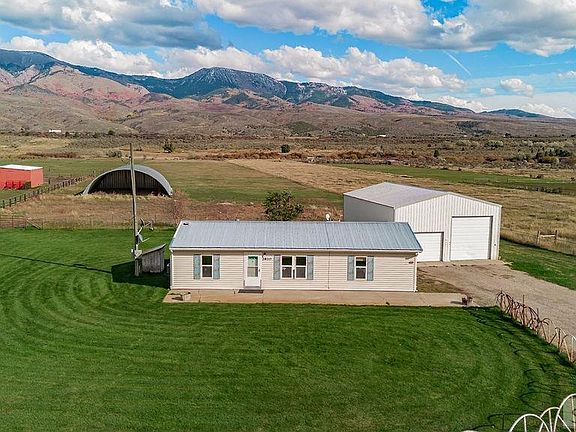 Escape to peaceful rural living with this affordable manufactured home on over 10 acres - surrounded by mountain views, breathtaking open space and a year-round natural creek running through the property. This home is priced to move and offers freedom with no CCRs, allowing full control of ownership and use. Bring your livestock—there's a fenced pasture, outbuildings, and plenty of space to roam. A large shop with a loft and RV-height door is ideal for projects, equipment, or recreational toys, while a bonus Quonset hut provides additional storage for RVs, boats, or farm use. Inside, enjoy a comfortable single-level layout with a split bedroom design. The primary suite features an ensuite bath and walk-in closet, while two additional bedrooms and a full bath sit on the opposite side for added privacy. The kitchen comes equipped with appliances and offers mountain views from the window and covered patio beyond. Additionally, the home features a metal roof, central air, and a landscaped yard with auto sprinklers—everything you need for country comfort. Peaceful, private, and practical—this property blends rural charm with everyday convenience.
