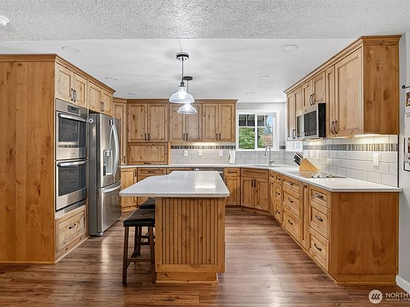 Spacious 4 bedroom 3 bath home on just over a 1/2 acre. Kitchen remodeled in 2018 features quartz counters, easy close cabs, double oven, with eat bar, and updated laminate flooring on the main. Wet bar, wood stove, family room that opens to a covered patio. Laundry on the main has full bathroom. Upstairs primary room has walk in closet and shower, double sinks, and has a private balcony to relax on! 2 additional bedrooms on the second floor. So much room to spread out with the bonus room and 1 more bedroom on the third level. Back yard is fully fenced. Property has a complete apartment with kitchen, living room, 1 bedroom, full bathroom and laundry. Property has 2 sheds for storage, garden and 1 greenhouse.