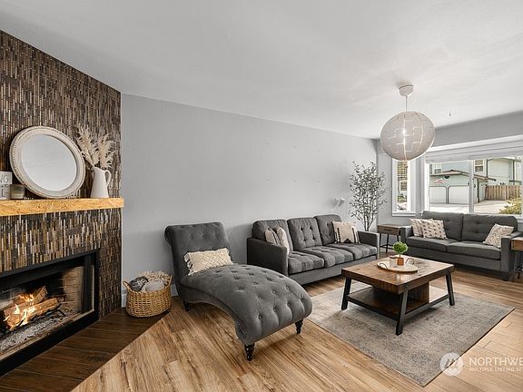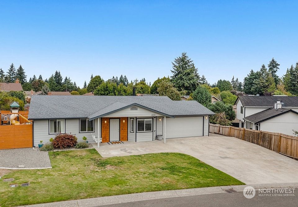 Welcome to this exceptional home in a serene neighborhood, recently remodeled with a designer's touch. Highlights include custom kitchen with ample cabinet space, inside and under-cabinet lighting, laminate and tile flooring throughout. Enjoy elegantly updated bathrooms. New siding, doors, windows, high-efficiency gas furnace and air conditioning. French doors open to a 570 sq. ft. covered deck with a fireplace and TV, overlooking a private multi-seasonal backyard with a large playground, hot tub and a solar-heated pool. The property also features a versatile separate studio, exterior cameras, ample parking, and space for RV and/or boat. Short distance to shopping, highways, and future light rail. A must-see for discerning buyers.