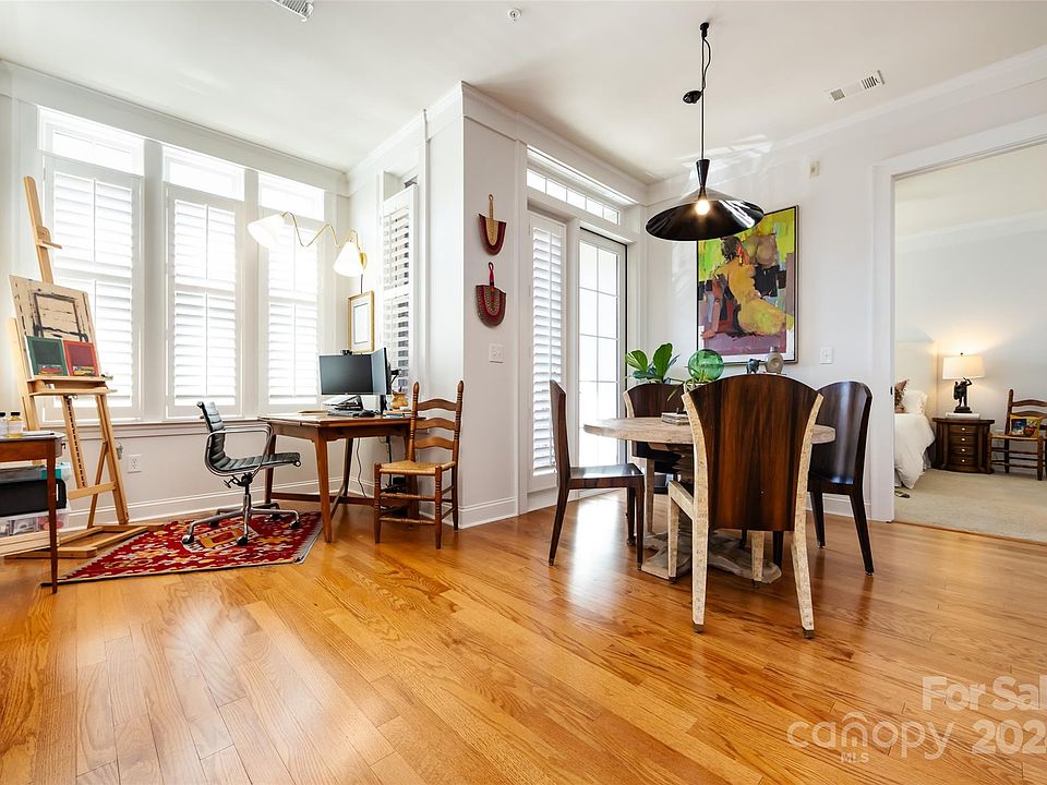 Stunning Myers Park condo in highly sought after Tranquil Court, one of the largest one bedroom plans in the building, Open floorplan with amazing natural sunlight, high ceilings, large walk-in closet with custom built in shelving, plantation shutters throughout, upgraded lighting, wood flooring in the living areas, granite countertops. Secured entry building, fitness center onsite, be sure to tour the beautifully landscaped courtyard. Conveniently located near the airport, Uptown, lots of shopping, multiple amazing restaurants & the greenway!!