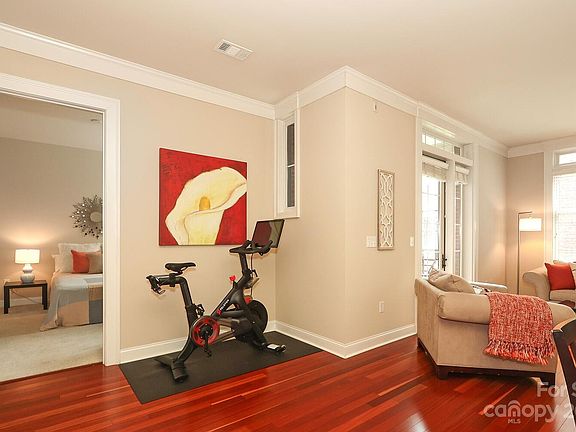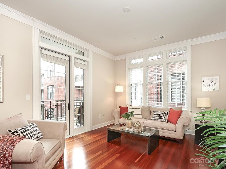 NEW IMPROVED PRICE!  Discover the perfect blend of comfort and convenience at Tranquil Court Condominiums. This well-maintained corner unit showcases open floor plan with hardwood floors in living area, 10ft high ceilings, large windows allowing for ample natural light, stainless steel appliances and granite countertops. With a walk-in closet and additional75"x78" heated storage space just across the hall, you'll have plenty of space for your belongings. Unwind on your courtyard facing covered balcony or in the serene courtyard, complete with a fountain, cozy outdoor fireplace, gas grills and seating. Located in a highly sought-after Myers Park neighborhood, this condo is walkable to shopping, dining, and the greenway. Maintain an active lifestyle in the private gym exclusively available to residents. For peace of mind, secured covered parking is available in parking deck, as well as this home comes with a 1-year Home Warranty.