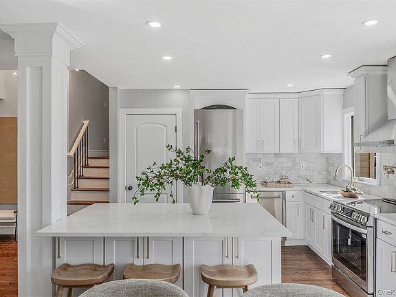 Welcome Home to your newly renovated Dream Home nestled South of Merrick Road in the heart of South Merrick! This exquisite 5-Bedroom, 3-Bathroom Split Level masterpiece showcases nearly 3,000 square feet of luxurious living space. Thoughtfully designed and meticulously customized, this home offers an unparalleled blend of elegance, comfort, and modern living. The open-concept layout creates a bright and inviting atmosphere which is perfect for both everyday living and entertaining. At the heart of the home is the stunning Gourmet Kitchen featuring White Shaker Cabinetry adorned by Chic Modern Gold Hardware, Quartz Countertops, Marble Backsplash and Premium Stainless Steel Appliances.. Walnut colored Hardwood Floors give this home a classic look that seamlessly balances elegance with warmth. A true entertainer's paradise, this home provides a seamless transition from indoor luxury and outdoor splendor. Step through the sliding doors from the Dining Room to your private backyard oasis where you can relax on the sprawling outdoor deck or gather around the outdoor kitchen to grill your favorite meal. The Primary En-Suite is a true tranquil retreat offering a walk-in closet, sitting area and en-suite full bathroom with radiant heat flooring. Additional features include: 5 Bedrooms, 3 Full Bathrooms, Family Room, New Air Conditioning, Wine Refrigerator, Pot Filler, Smart Home Technology, Alexa Ready Smart Home Lighting, 2 Zone Heating, In-Ground Sprinklers and 200 AMP Electric. Close proximity to all Major Parkways, Restaurants, Shopping, Parks, Beaches, LIRR. Your Dream Home awaits you!