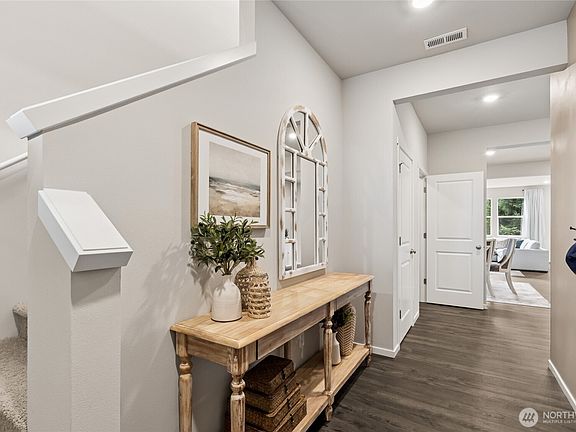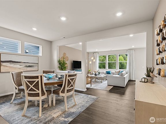Bakerview is a stunning new home community featuring amenities such as Pickleball courts, Basketball court, playgrounds, picnic structures and tree lined sidewalks. The Ballard has all of the components that make this floorplan large enough to spread out but also defined and useable. This home is finished with light color painted cabinets and extended laminate flooring on the main. The main floor bedroom and ¾ bath adds tremendous value to this home along with the A/C, 240Volt outlet in the garage, home automation package and timeless kitchen appointments such as island, gas cooking w/stainless appliances, slab quartz counters and more. 1-2-10 year warranty. Buyers must register their broker on site at first visit, including open houses.