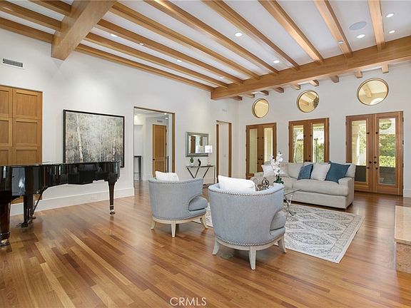 Set on 2.8 acres in the heart of Modjeska Canyon, this custom Mission Revival estate combines elegance, privacy, and nature. The main home offers 5 bedrooms and 8 bathrooms, with vaulted ceilings, Brazilian cherry wood floors, and oversized windows that fill the home with light. The living room showcases a statement fireplace and opens to the outdoor patios through French doors. The kitchen is outfitted with premium appliances, a center island, and a large butler’s pantry perfect for entertaining. The primary suite features a steam shower, limestone counters, and two walk-in closets. A detached guest casita includes its own kitchen, bedroom, and bathroom. The property boasts over 50 mature fruit trees, a horse stable, and space for a pool or vineyard. Includes a 5-car garage with a workshop, fire-sprinkled attic, and direct access to nearby hiking and equestrian trails. A one-of-a-kind escape offering timeless style and California lifestyle living.