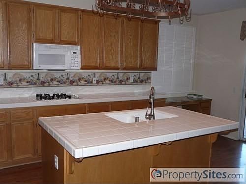 Downstairs master and master bath. A secondary upstairs bedroom also has private bath. Formal dining and large great room. Kitchen has center island with sink. Laminate flooring in kitchen and dining room. Shutters in all three upstairs bedrooms. Covered patio. View of mountains.
