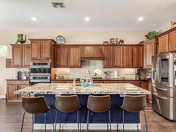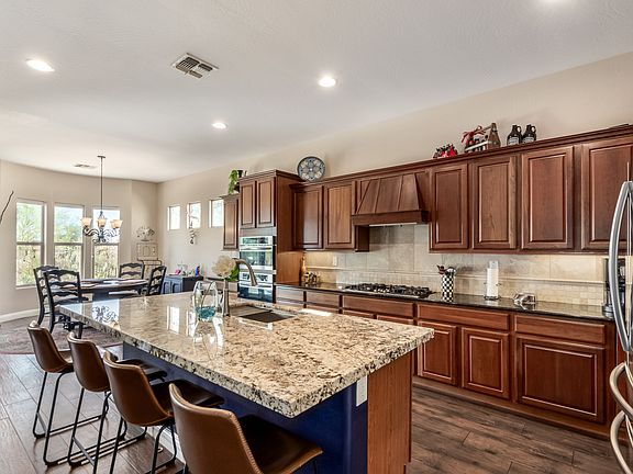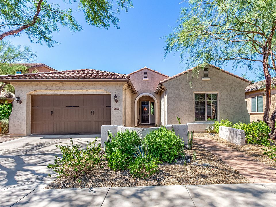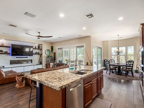Stunning single-level former model home in Fireside with 4 bedrooms, 3 baths, nearly 2700 sf & a wide open floor plan- perfect for entertaining! Gourmet island kitchen boasts granite counters, gas range, stainless appliances, & upgraded cabinetry. Spacious great room showcases 10 ft ceilings, elegant fireplace, surround sound and wood tile flooring t/o. Luxurious master suite features tiled walk-in shower & oversized closet. 3-car garage includes 2 EV charging stations. Gorgeous yard with view fence, mountain views, & no homes behind. Home is walking distance to the amazing Fireside community center (resort style pool, rock climbing, workout facility, basketball & more) & miles of hiking and biking trails. A MUST SEE!