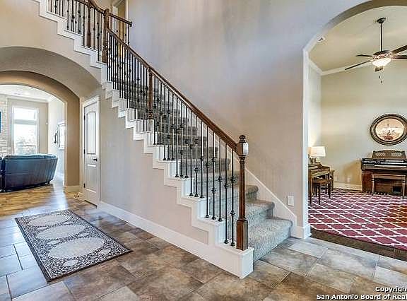 Immaculate, move-in ready home in gated community offers open floorplan, high ceilings, gas rock FP, crown molding, wood framed windows & doors, iron railing/baluster & upscale layered blinds. Incredible island kitchen offers gas cooking, dbl oven, & butler's pantry. Master retreat has garden tub, dbl vanities, separate shower & walk in closet. 3 bedrooms, 2 baths & gameroom upstairs. Beautifully landscaped w/ sprinkler system. Large covered patio for entertaining. H2O softener. Neighborhood pool/Boerne ISD