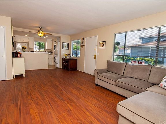 PRICE REDUCED FOR IMMEDIATE SELL WITH UPGRADES!!! MUST SEE THIS NEWLY REMODELED, highly desired and move-in-ready single-story two-bedroom, one-bath beauty. This "House like Condo" is nestled within pristine landscapes near cul-de-sac. Level entry to a spacious open floor plan where you can sit and enjoy the beautiful outside view to the perfectly manicured gardens. Home offers new laminated floors, newer roof, copper repipe, ceiling fans/lighting throughout. Kitchen has been newly upgraded and features tile flooring, recessed lighting, breakfast counter area and large pantry and newer appliances which include stove, refrigerator and front loading washer and dryer. Full bath and shower have been upgraded with newer floors and tile. Private back patio enclosed with newer vinyl fencing with exit to the courtyard garden. Open garage with a storage room and cabinet. Association amenities offer: playground, sports court and picnic area. HOA's incredibly low fee includes water, trash and exterior earthquake insurance. Bring your offers, this Beauty will not last!