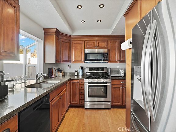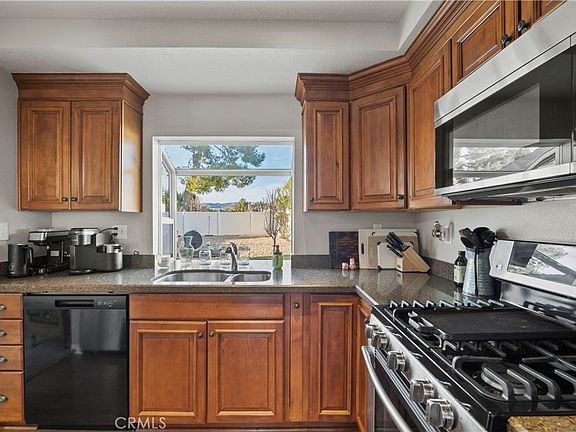 Charming single-story home on a tranquil cul-de-sac street with fantastic curb appeal. Enjoy the largest lot in the tract and a sprawling private backyard filled with fruit trees and breathtaking mountain views. This 1,257 sqft home features 3 bedrooms, 2 full baths and an open floor plan with a renovated kitchen boasting bay windows, stainless steel appliances, granite countertops and plenty of storage space. The family room with a fireplace opens to the kitchen, and the master suite offers an ensuite bath and backyard access. Upgraded with newer windows, HVAC unit, copper piping, smart garage door, exterior paint, and front yard sprinklers. With ample driveway space for RV/quad storage and a two-car garage, this home is conveniently located near shopping, restaurants, parks and schools, with no HOA and no Mello Roos fees. Don't miss out on the white picket home of your dreams!
