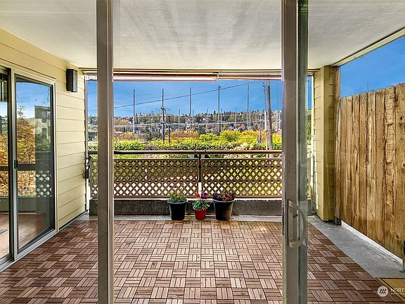 Spacious & sun splashed home with many recent updates including new kitchen counters, tile back splash, undermount sink, and freshly painted throughout. Formal dining room is the place for celebrations and gatherings. Large bedroom can fit a king bed and offers huge walk-in closet. Wonderful updates included vinyl wood plank floors, stylish gas fireplace, blinds that go from the top down and newer appliances. Imagine enjoying those long Summer evenings on the patio with plenty of room for friends and the BBQ! All this with 2 parking spaces. This sweet condo is awaiting your own bathroom design ideas. The location is the perfect blend for easy access to Queen Anne, Fremont, Ballard, Amazon, Google, and other tech companies.