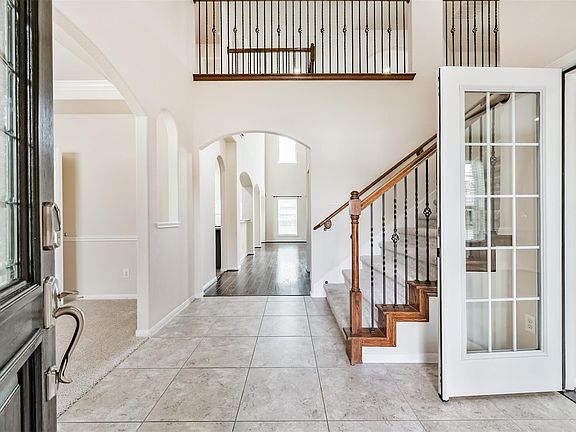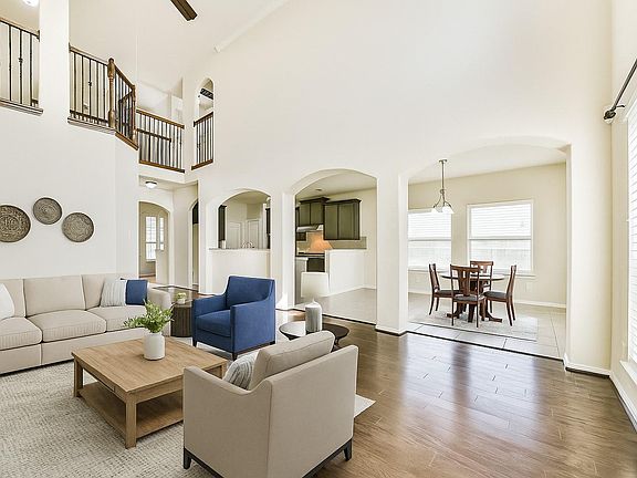 Beautiful two-story Bromley home located in a gated community, featuring 5 bedrooms, 3.5 baths, a spacious upstairs game room, and a 2-car attached garage. The primary bedroom and en-suite bathroom are conveniently located on the first floor for added privacy. The kitchen boasts maple cabinets, granite countertops, and a farmhouse sink, flowing seamlessly into the dining area. The family room is anchored by a stunning cast stone fireplace, while tile flooring enhances the entry, kitchen, and dining spaces. Enjoy the outdoors on the covered patio overlooking the backyard. This home is also equipped with solar panels and a large Tesla battery bank, providing backup power similar to a generator. The owner reports paying between $20–$50 per month for electricity with the solar panel electricity, offering incredible energy savings. Don’t miss your chance to own this energy-efficient home in a gated community—schedule your appointment today!