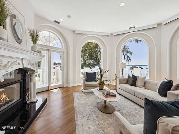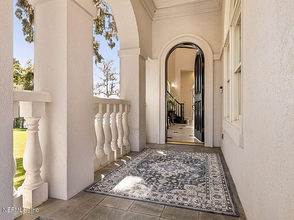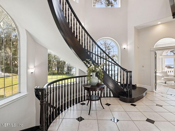 Welcome to this elegant Mediterranean Modern home tucked away in the gated Tala Cay community only minutes from The Bolles School. Positioned on 3/4 of an acre with 113 feet of stunning St. Johns River views, boasting a private dock and boat lift. A 3-story custom built home by premiere builder Collier Classic Homes and a former Symphony Showcase Home. The breathtaking views of St Johns River from floor to ceiling windows opens to a world of nature from all three floors. Enjoy gorgeous sunsets while entertaining guests and family in luxury. Wake up to the serenity of the primary suite and sitting room surrounded by windows. Relax in the renovated spa-like bath with his and her individual dressing areas with custom built-ins. The amenities are endless and include a gracious two-story foyer, accented by a stunning chandelier and spiral staircase. The expansive gourmet kitchen, butler's pantry and dining room provide ample space for entertaining guests. The studio apartment above the 3-car garage comes equipped with a kitchenette and full bathroom, offering endless possibilities. This one-of-a-kind luxury home must be experienced in person to appreciate all it has to offer.