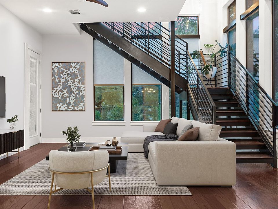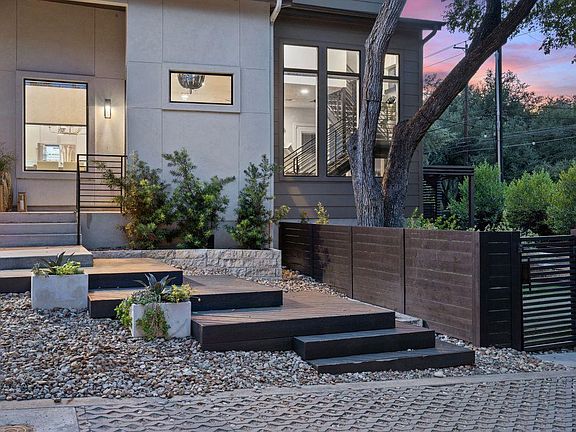 Located in the heart of coveted 78704, this refined 4-bedroom, 3-bath residence spans 2,299 square feet and offers a seamless blend of privacy and proximity to downtown Austin. Positioned across from a neighborhood park with trails and green space, the setting delivers a rare balance of tranquility and urban energy. The thoughtfully designed interior offers a flexible floor plan with three generous bedrooms upstairs and a first-floor bedroom that functions beautifully as a guest suite or sophisticated home office. Two living areas and a laundry room complement the light-filled open spaces that connect to a designer kitchen with premium appliances, stylish countertops, and pantry storage. Upstairs, the primary retreat features dual vanities, a soaking tub, and a walk-in shower alongside two additional bedrooms. Outdoors, a resort-style backyard awaits with a pool, putting green, and cabana for elevated entertaining. Complete with a two-car garage and ample storage, this home invites you to experience the best of Austin living.