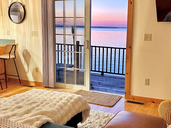 This two floor home has brand new furniture, beautiful hardwood floors, and stunning lakefront views. The top floor has a large eat-in kitchen, modern living room facing the lake, a king bedroom with large closet, a full bathroom, laundry room, hybrid office/gym/guest room, and a wrap around deck with lounge chairs and grill. Downstairs is a large second bedroom suite with a Queen bed, closet, its own living room and half bath, with private slider entry to lawn and waterfront. This is a biking, walking, boating & birding community of friendly neighbors, and just a 15 minute drive to Restaurants, shops & The Medical Center in St. Albans, and just 30 minute drive to Burlington. Pets are considered.